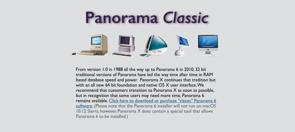 For advanced users, Panorama X includes a full-featured programming language, including conditional logic, subroutines, alerts and dialogs, full menu control, debug instrumentation, background timers, asynchronous internet access, and much much more. You can even integrate code written in AppleScript, shell script, Python, Ruby, PHP and more.