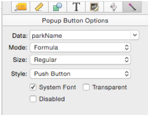 Data – This is the field or variable that is linked to the pop-up menu. You can either type in the name of a field or variable, or you can choose a field name from the pop-up menu (on the right). Panorama will also auto-complete field names as you type.