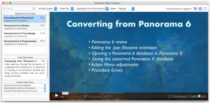 If you are coming over from an earlier version of Panorama 6, we’ve developed four videos just for you. To view these, open Help>Panorama X Video Training and choose Upgrading From Panorama 6 from the curriculum pop-up menu.