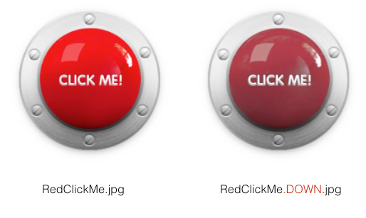 If you want to make a button that looks like it is actually being depressed when you push on it, you have to create two images. The second image should look like it is being pushed. It must have the same name as the primary button image, but with .DOWN at the end (but before the extension).