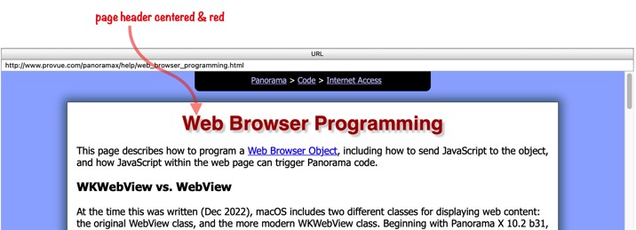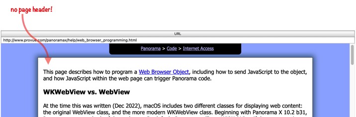 At the time this was written (Dec 2022), macOS includes two different classes for displaying web content: the original WebView class, and the more modern WKWebView class. Beginning with Panorama X 10.2 b31, Panorama supports both of these classes. By default, Panorama will use WKWebView if the computer is running macOS 10.13 or later, while using the older WebView class if running 10.12 or earlier. You can, however, change the default using the Preferences>General panel, and you can also select the class for an individual Web Browser Object.